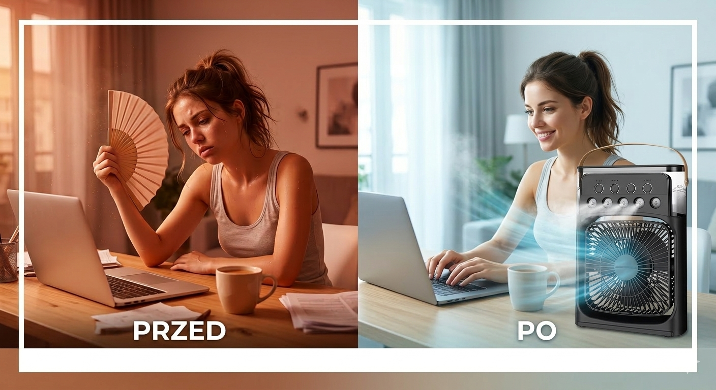 Chłodzi powietrze, delikatnie je nawilża i tworzy przyjemną, chłodną strefę wokół Ciebie.